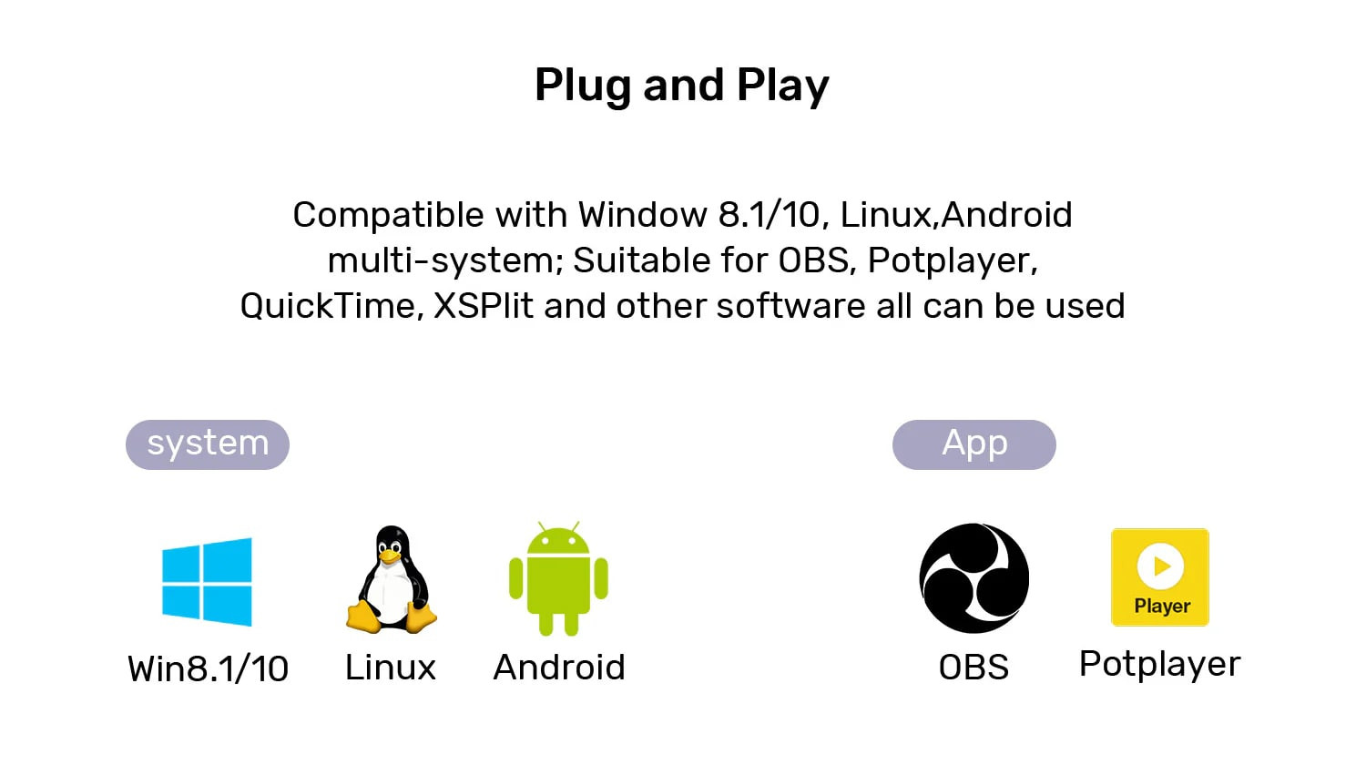 Windows 8.1/10, Linux, Android çoklu sistem ile uyumludur; OBS, Potplayer, QuickTime, XSPlit ve diğer yazılımların tümü için uygundur.