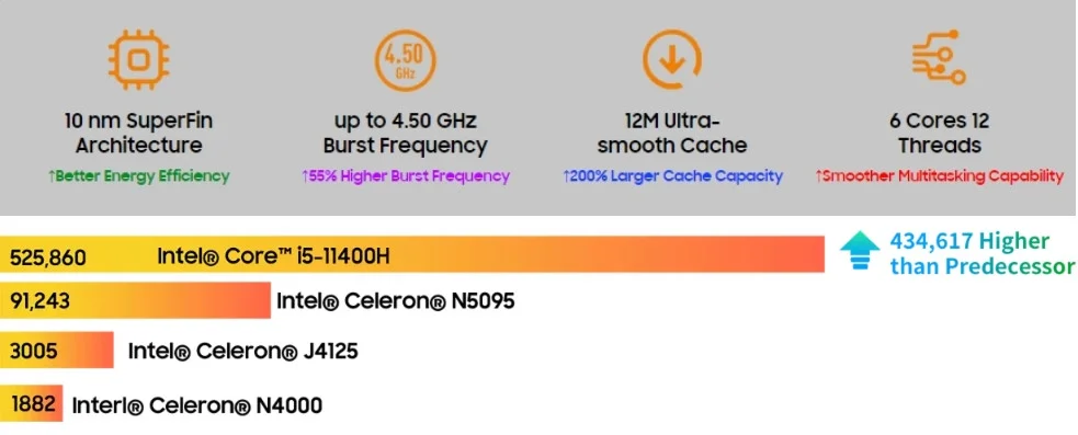 Yüksek performansı ortaya çıkarın ve verimlilik sınırlarını zorlayın! MP200, 12. nesil Intel® Core™ i5-12450H işlemci ile donatılmıştır ve 4.4GHz'e kadar ulaşan inanılmaz patlama frekansı sayesinde iş, eğlence ve oyunları zahmetsizce ışık hızında yönetmenizi sağlar.