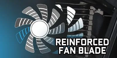 Gelişmiş Fan Kanat tasarımı, fan dönüşünün stabilitesini artırır. Kanatlardaki oyuklar sayesinde hava akışı daha pürüzsüzdür. Bu nedenle fan titreşimi ve fan sesleri çok daha düşüktür.