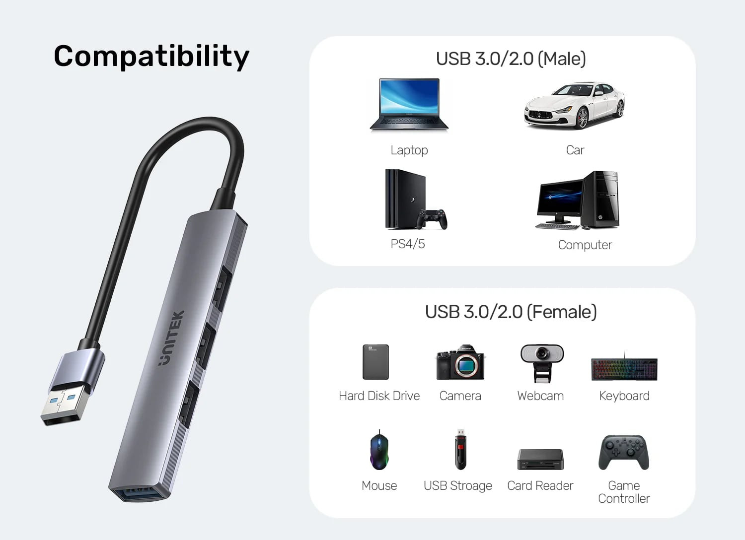 UNITEK TYPE-A TO 4 PORT USB (USB3.0+USB2.0) H1208A